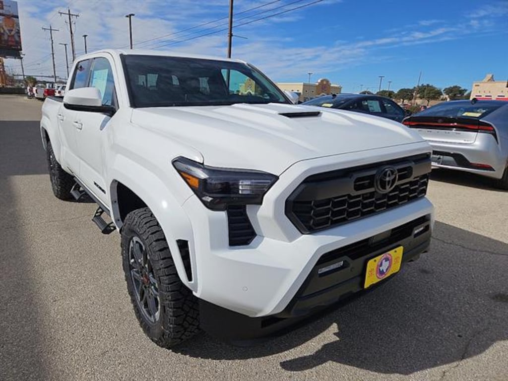 50 State Emissions - Includes Emissions: LEV3-ULEV50 emissions,Emissions tiers: Tier 3 Bin 50 emissions,Front seat upholstery: Cloth front seat upholstery,Rear seat upholstery: Cloth rear seat upholstery, A highly functional and stylish upgrade for your truck, the predator tube step complements the Tacoma's rugged design and improves access to the cab. .Black powder-coat finish .Drop steps for easy access .Durable construction is chip-and rust-resistant, Audio Multimedia Upgrade - includes 14-in. Toyota Audio Multimedia display - Includes Satellite trial: 3 month satellite trial subscription,Primary display size: 14 inch primary display,Primary display touchscreen: Primary monitor touchscreen,Smart device integration: Apple CarPlay/Android Auto smart device wireless mirroring,Radio: AM/FM/digital/SiriusXMsatellite, Get a leg up when loading or unloading the cargo in your truck's bed with this BedStepïÿý. It bolts on with no drilling required and tucks neatly under the rear bumper when not in use. . Works with tailgate up or down . Hands-free operation; adjusts easily. Lightweight, high-strength aluminum die-cast construction features a reinforced nylon step pad with ribbed, nonskid stepping surface . 300-lb. load capacity . Weather-resistant, black-anodized and Teflonïÿý powder coat finish for long-term durability . Leaves hitch receiver free for towing, Get the spray-on bedliner that's as tough and durable as your Tacoma. Protect your bed from damage with this permanently bonded fixture. . New, Toyota-exclusive softer material to keep items from sliding in the bed . Toyota quality standards assure uniform thickness and a consistent texture . Textured surface is designed to prevent cargo from sliding . No lost cargo space, minimal added weight . Proprietary application method helps create a straight and crisp edge . Fully warranted; repairs completed quickly and easily at a Toyota dealership, TRD Sport Upgrade Package (i-FORCE, 5ft bed) - includes fabric-trimmed seats with heated power-adjustable front seats, leather-trimmed heated steering wheel, JBL(R) Premium Audio with JBL(R) FLEX portable speaker, Qi-compatible wireless charging, auto-dimming rearview mirror with HomeLink(R) universal transceiver, Integrated Trailer Brake Controller (ITBC), 400W/120V AC power inverter, and power horizontal rear window - Includes 120V/400W AC Power Inverter,Interior 120V AC power outlets: 1 interior 120V AC power outlet,Exterior 120V AC power outlet: 1 exterior 120V AC power outlet,Onboard power supply (kW): 0.400 kW,Heated Front Seats,Smart Key W/Digital Key Technology,Keyfob keyless entry,Smart device-as-key proximity door locks,HomeLink Universal Transceiver,Low Auxiliary (30A) Switches,Integrated Trailer Brake Controller,8-Way Power Driver and Passenger Seat Adjusters,Driver seat direction: Driver seat with 8-way directional controls,Passenger seat direction: Front passenger seat with 8-way directional controls,Power driver seat controls: Driver seat power reclining, cushion tilt, fore/aft control and height adjustable control,Power passenger seat controls: Passenger seat power reclining, cushion tilt, fore/aft control and height adjustable control,Pre-Wire Accommodation (bed Power Port),Deck Storage Box,Heated Leather-Trimmed Steering Wheel,Steering wheel material: Leather steering wheel,Heated steering wheel,Power Horizontal Rear Window,Speakers: JBL speakers,Manual driver seat controls: Driver seat manual lumbar support,Wireless speaker number: 1 wireless speaker,Speakers number: 9 speakers
